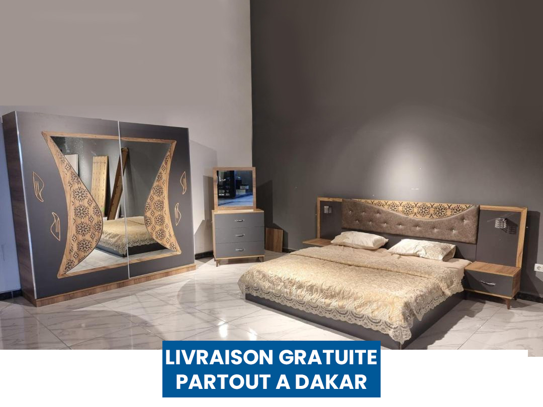 Dimensions • Armoire Coulissante : 220 x 240 x 50 cm • Coiffeuse : 90 x 80 x 41 cm • Lit : 180 x 200 cm • Chevets : 40 x 50 cm Coiffeuse et 2 Chevets Un espace raffiné, pensé pour le bien-être et l’harmonie.” “Élégance et confort réunis. Nos chambres à coucher importées offrent un design sophistiqué, des lignes épurées et une qualité irréprochable.