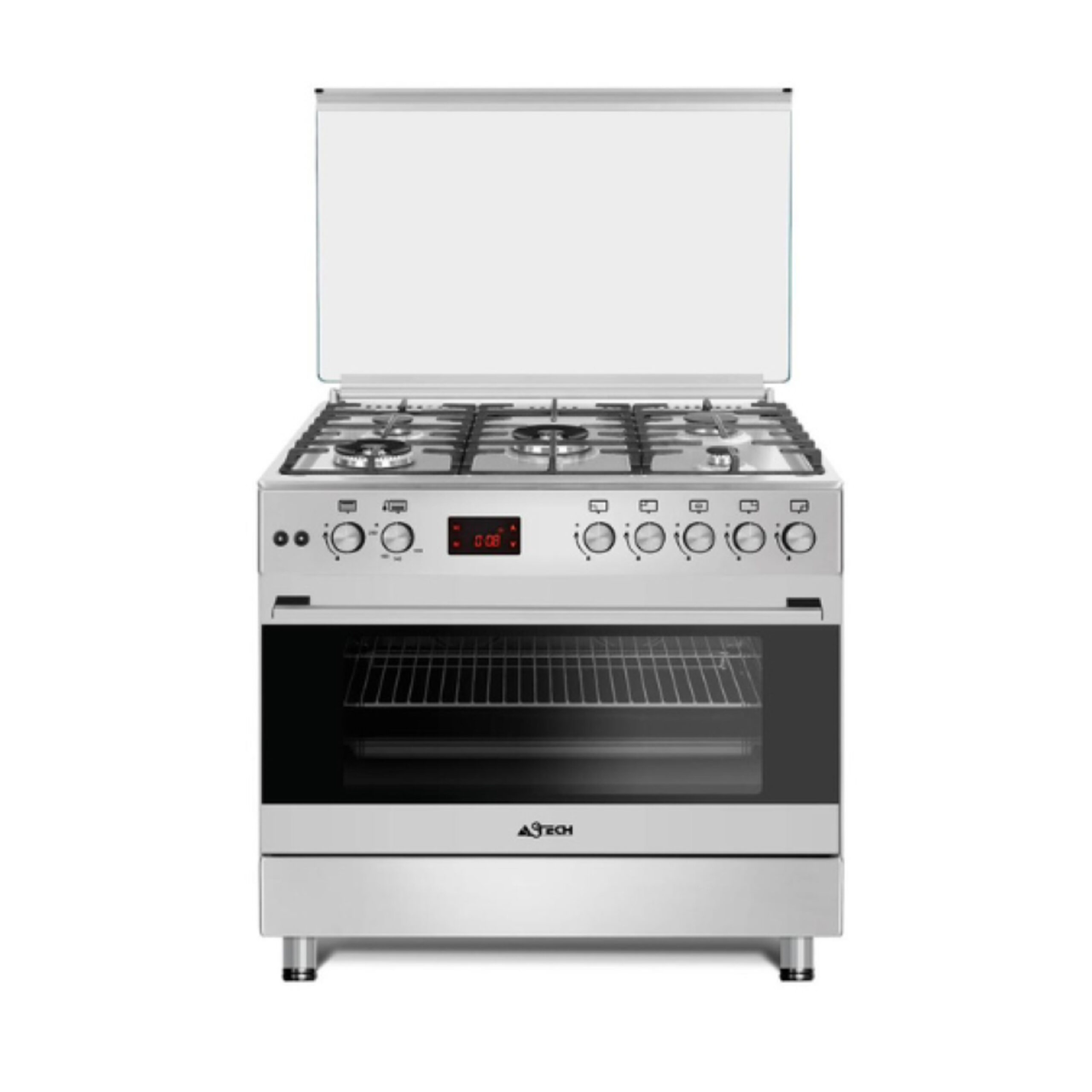 Marque: ASTECH Modèle: CK96MS Type de cuisnière: Full option Nombre de feux: 5 Chaleur tournante; Chauffe plat; Tourne broche Minuterie digitale