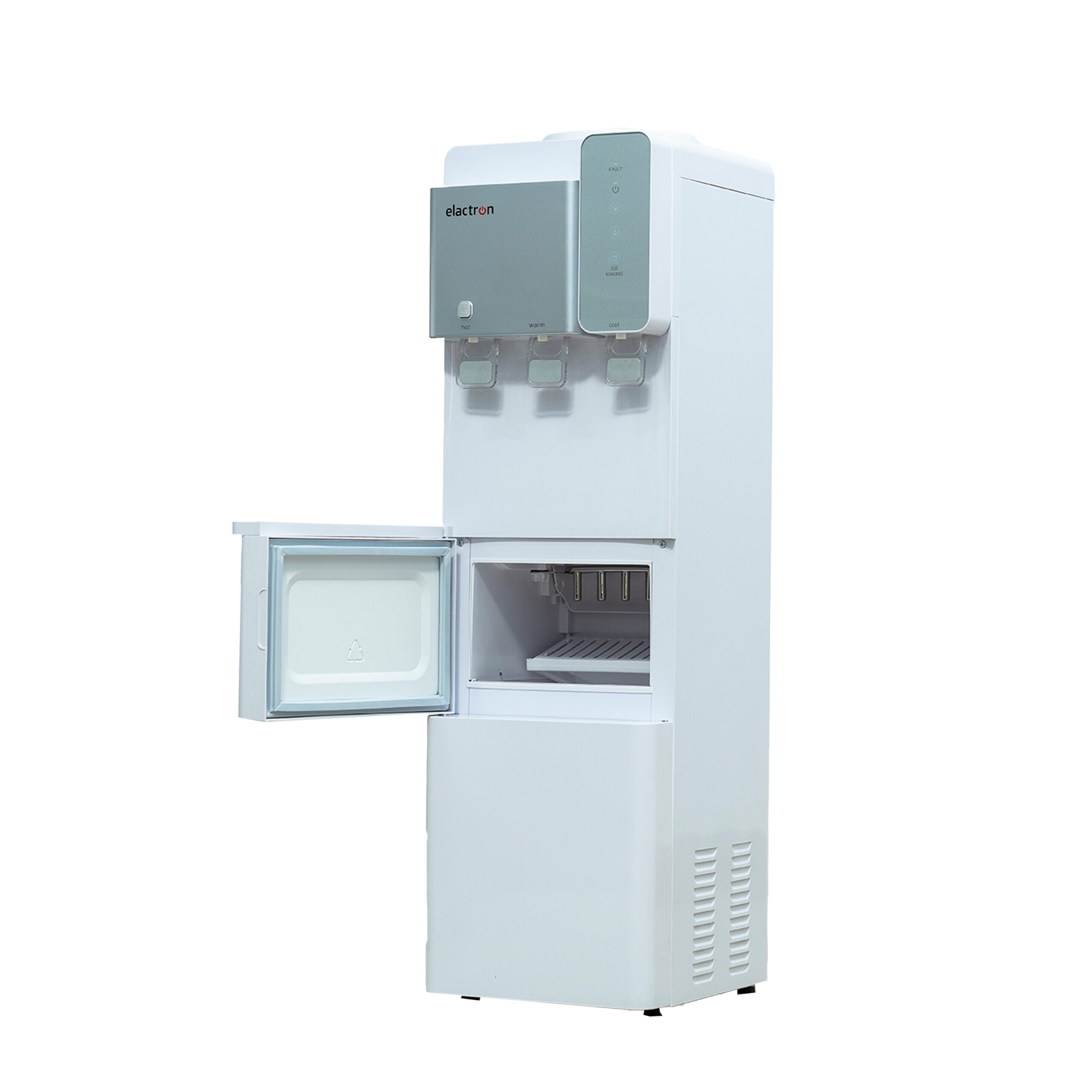 Fontaine à eau ELACTRON Marque : Elactron Ref: EL565 DISTRIBUTION GLAÇONS Sortie de l’eau : chaud et froid Type de refroidissement : compresseur Refroidissement : rapide Chauffage : rapide Sécurisé
