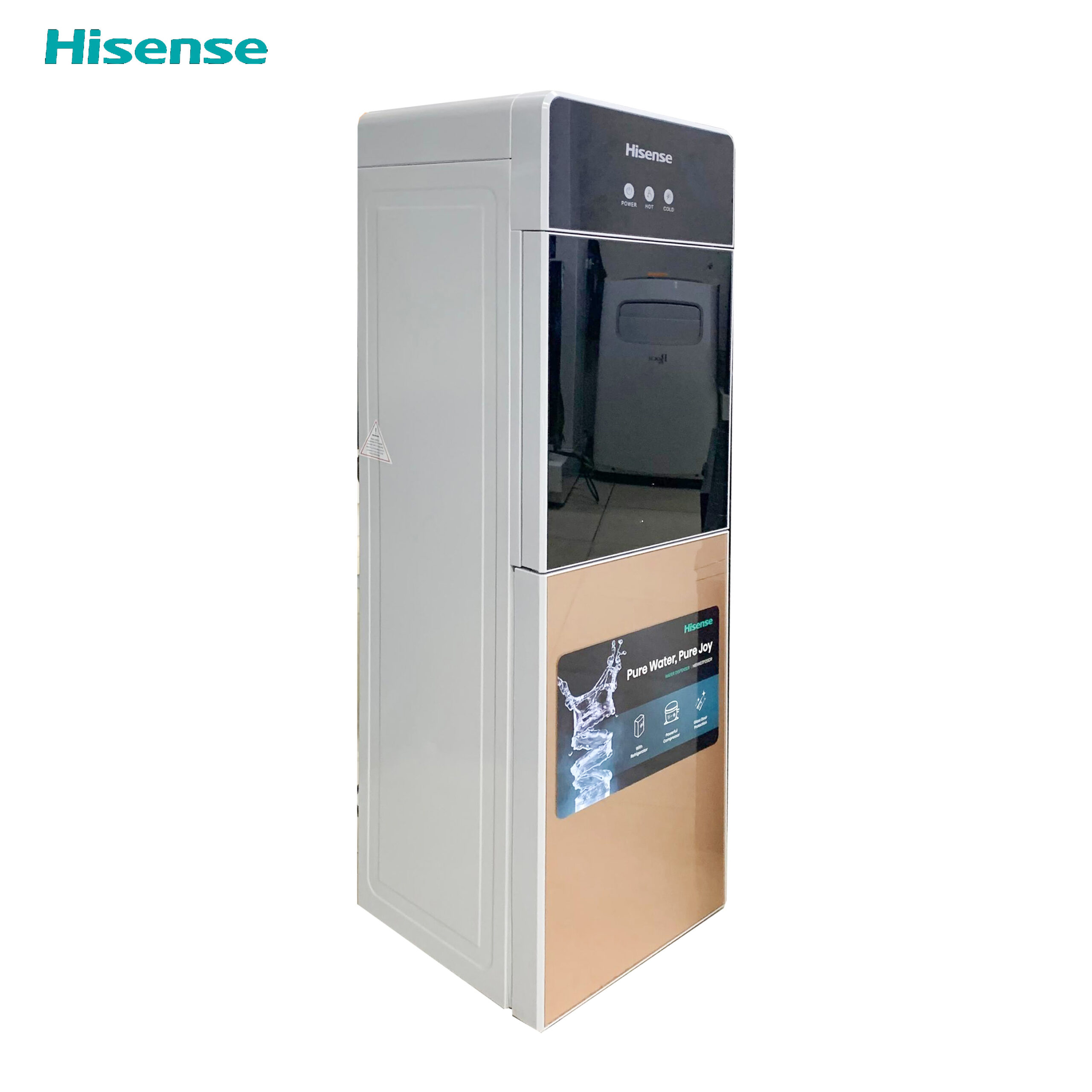 * Marque: Hisense * Type de produit: Fontaine à eau * 2 robinets * Eau chaude et froide * Protection contre la surchauffe * Chauffage et refroidissement rapides * compartiment réfrigérant * Couleur: Noir & Gold * Référence: H85WDTP251DR