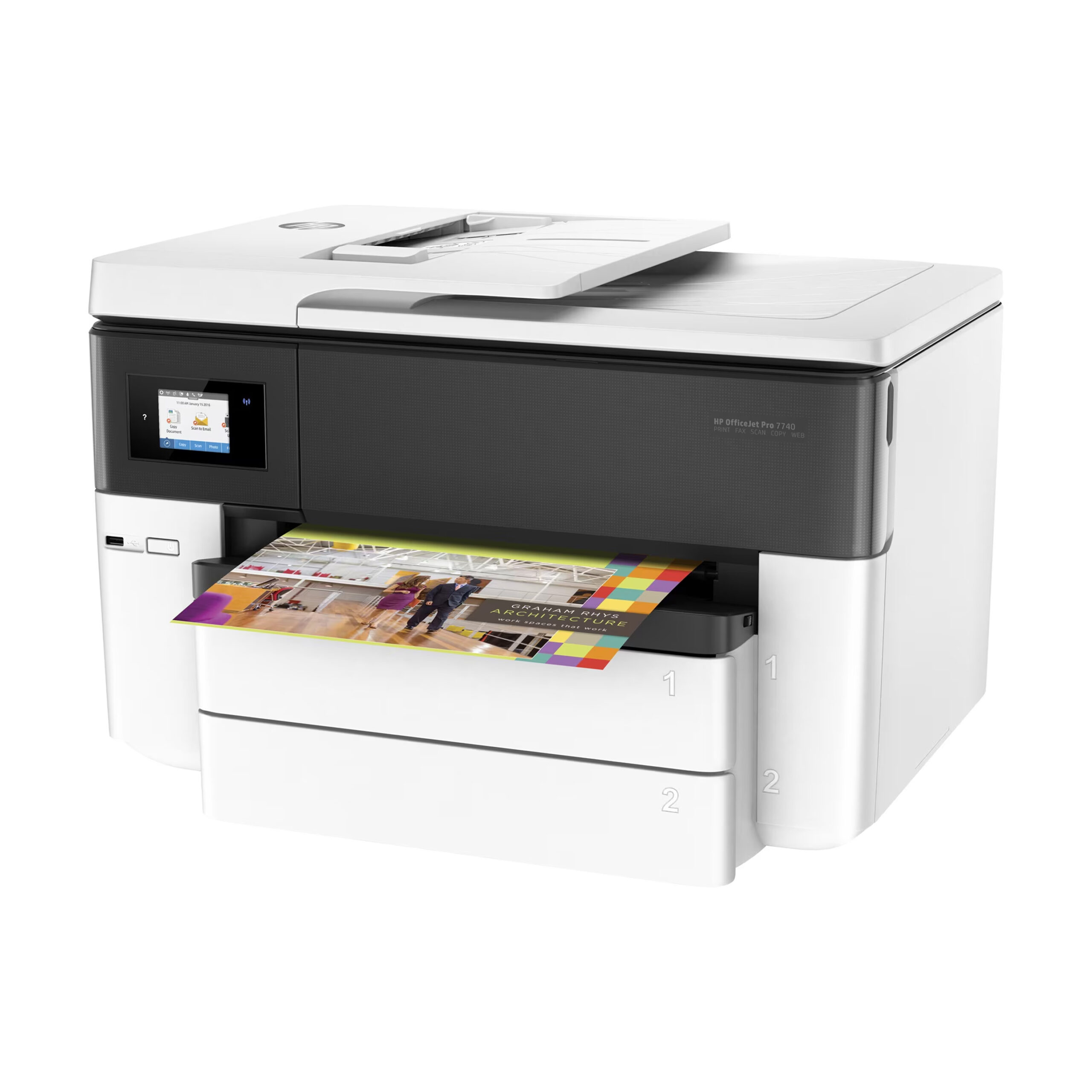 Imprimante Tout-en-un Grand Format HP OfficeJet Pro 7740 Impression, copie, numérisation, fax Couleur Imprimante avec sécurité dynamique Jusqu’à 22 ppm (noir) et 18 ppm (couleur) 35-sheet ADF; Scan to email Pour des équipes de 3 utilisateurs; Jusqu’à 1 500 pages par mois