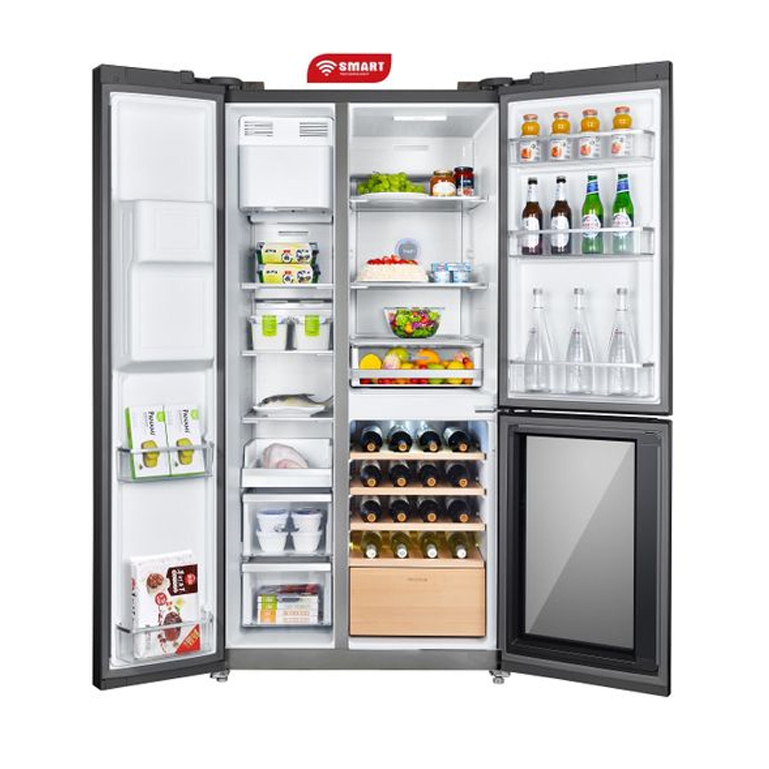 REFRIGERATEUR SMART TECHNOLOGY SIDE BY SIDE 3PORTES DIST D’EAU ET GLACON 548L GRIS STR582IS